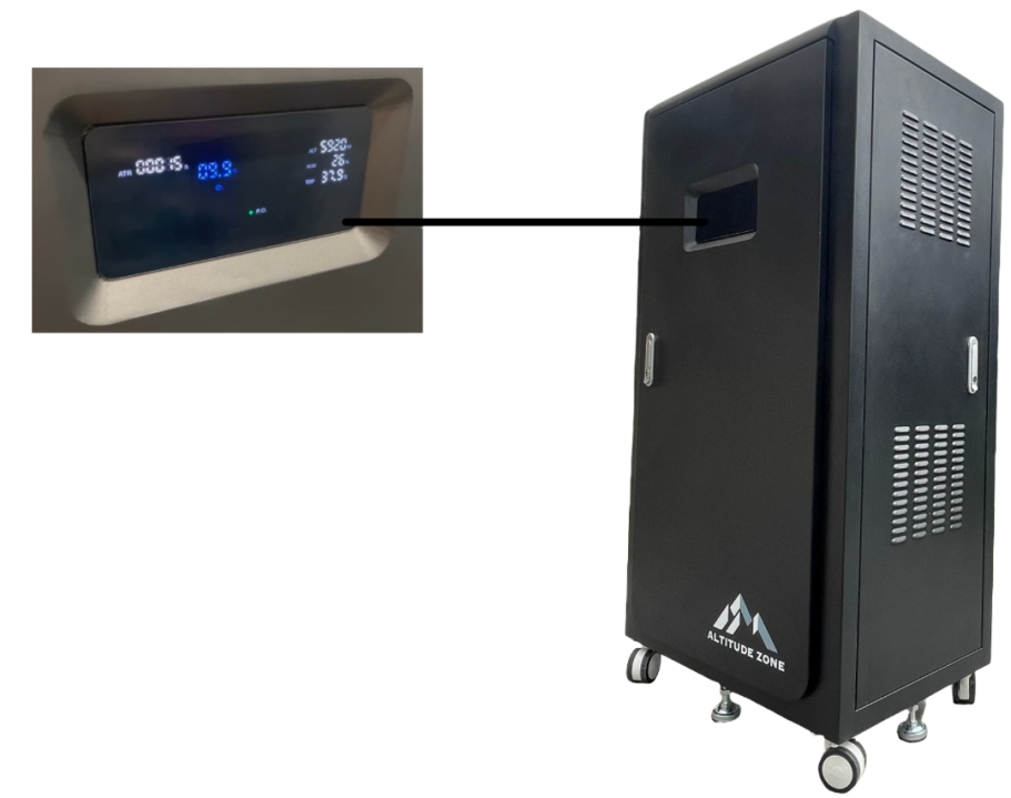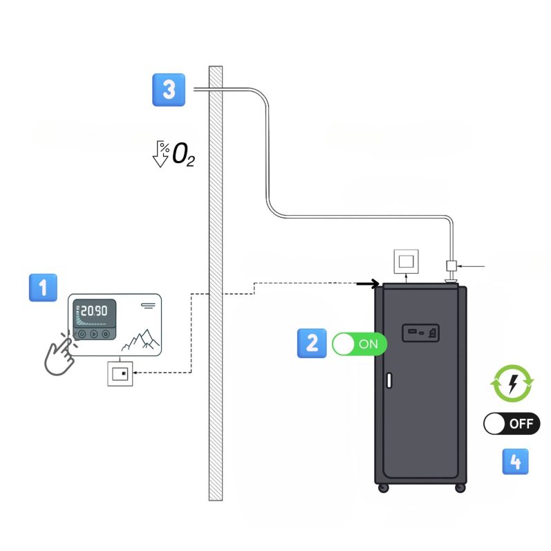 3️⃣ Hypoxische Luft wird über einen Schlauch in das Zimmer gebracht